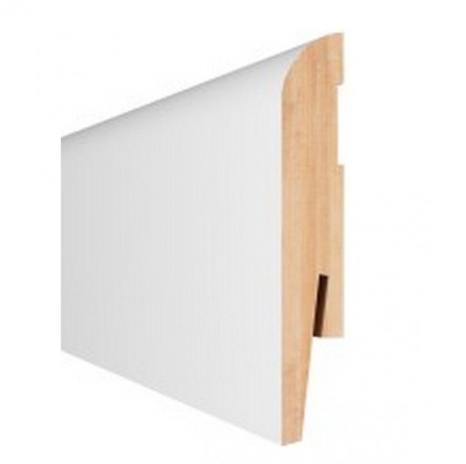 Завдяки збільшеній щільності базового матеріалу (MDF), плінтус має високу довговічність, знижену ламкість, підвищену ударостійкість і низьке водопоглинання. Цей плінтус має цілу низку переваг. Можна вибрати будь-який колір фарби і здійснити оздоблення відповідно до своїх ідей. Покривати плінтус слід акриловими, латексними або силіконовими фарбами на водній основі. Простий у монтажі та установці, кріпиться на кляймери за умови рівних стін, або на рідкі цвяхи.
