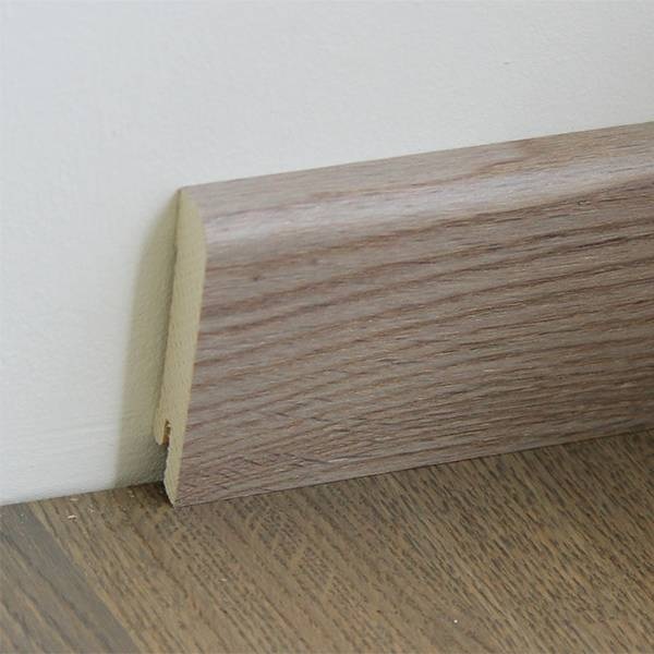 Виготовляється плінтус з МДФ дуже високої якості і зі шпону. Під час виготовлення плінтуса з МДФ застосовується метод пресування дрібної деревної стружки за високого тиску і температури. Клейкими речовинами є парафін або легнін. Отриманий таким чином матеріал вирізняється високою екологічною чистотою і абсолютно безпечний для людини.