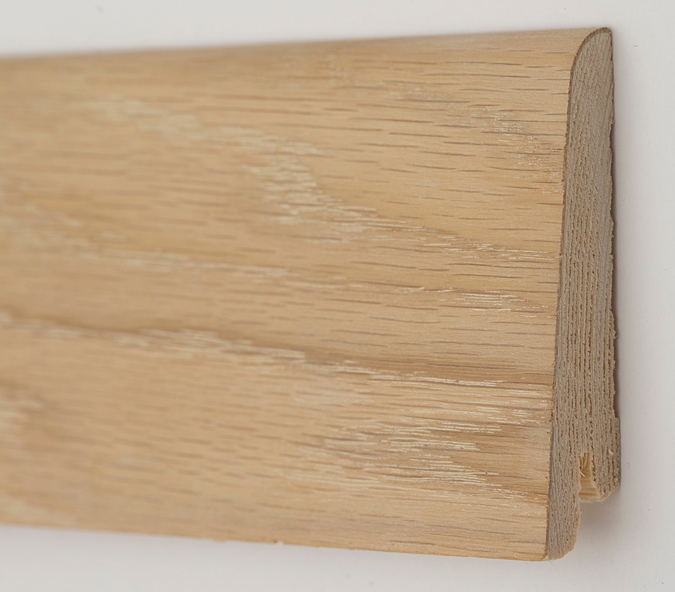 Плінтус для підлоги, виконаний зі зрощеної сосни, є більш стійким до перепадів температур і впливу вологості в приміщенні, ніж масивний плінтус із суцільного дерева. Покриття плінтуса шпоном (тонкий зріз натурального дерева цінних порід) дає можливість виготовляти плінтуси підлогові у різних породах деревини та в широкому розмаїтті кольорів.Завдяки використанню сосни, як недорогої деревини для основи плінтуса, купити якісний дерев'яний плінтус стало можливим для багатьох шанувальників натуральних матеріалів в інтер'єрі. Звичайно ж незаперечною перевагою плінтуса шпонованого є екологічна та естетична властивість, в порівнянні зі штучними пластиковими і МДФ плінтусами.
