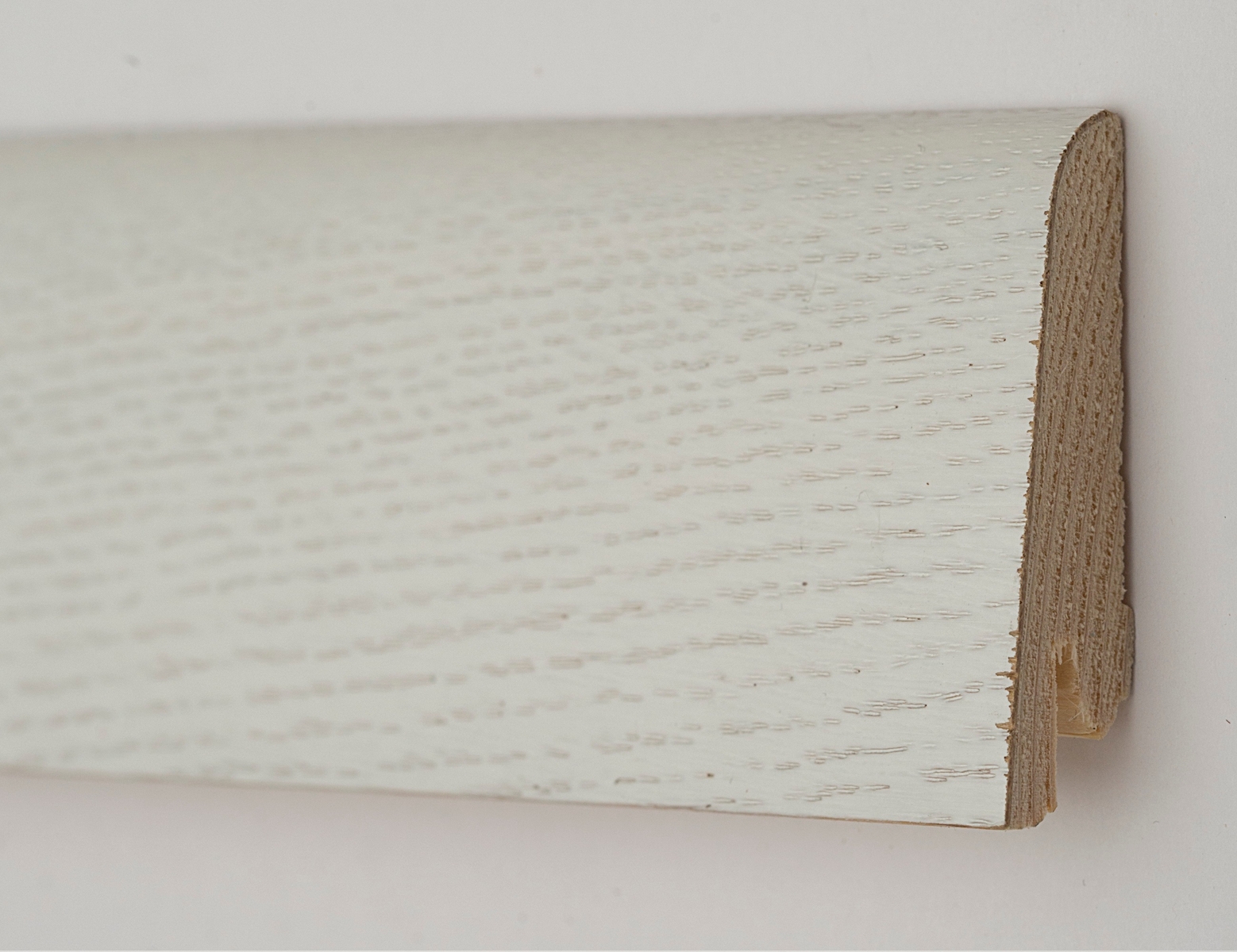 Плінтус для підлоги, виконаний зі зрощеної сосни, є більш стійким до перепадів температур і впливу вологості в приміщенні, ніж масивний плінтус із суцільного дерева. Покриття плінтуса шпоном (тонкий зріз натурального дерева цінних порід) дає можливість виготовляти плінтуси підлогові у різних породах деревини та в широкому розмаїтті кольорів.Завдяки використанню сосни, як недорогої деревини для основи плінтуса, купити якісний дерев'яний плінтус стало можливим для багатьох шанувальників натуральних матеріалів в інтер'єрі. Звичайно ж незаперечною перевагою плінтуса шпонованого є екологічна та естетична властивість, в порівнянні зі штучними пластиковими і МДФ плінтусами.