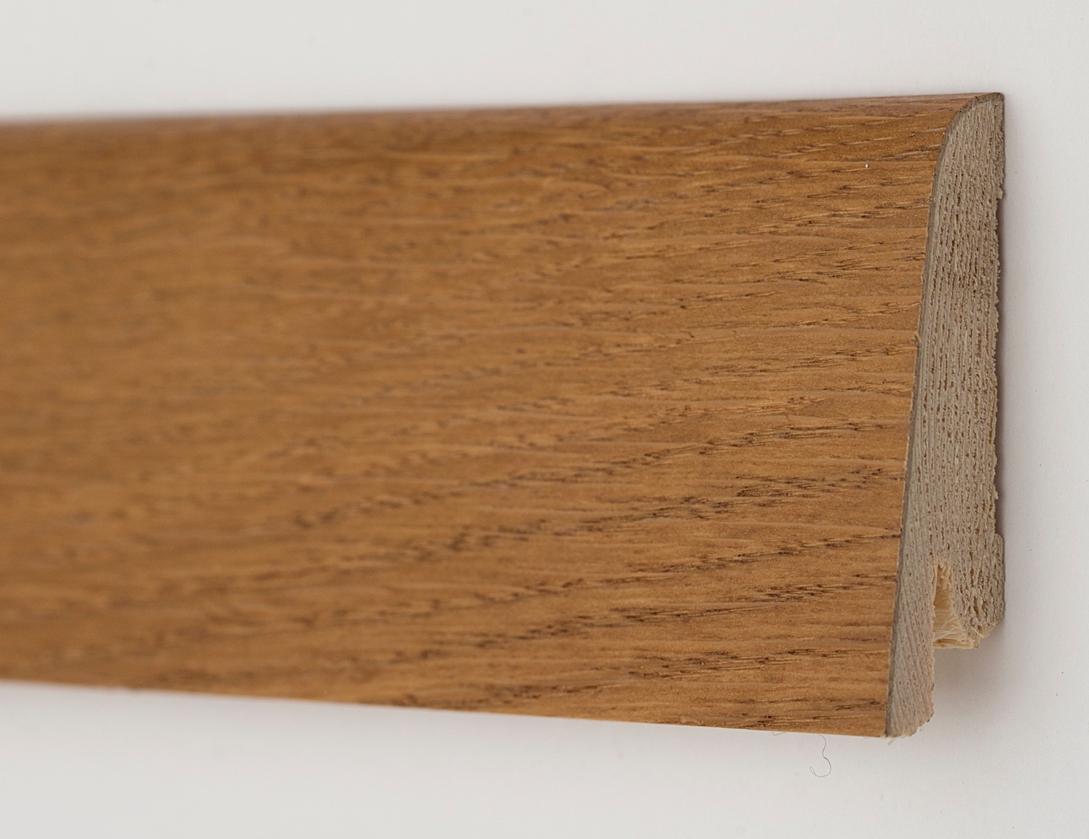 Плінтус для підлоги, виконаний зі зрощеної сосни, є більш стійким до перепадів температур і впливу вологості в приміщенні, ніж масивний плінтус із суцільного дерева. Покриття плінтуса шпоном (тонкий зріз натурального дерева цінних порід) дає можливість виготовляти плінтуси підлогові у різних породах деревини та в широкому розмаїтті кольорів.Завдяки використанню сосни, як недорогої деревини для основи плінтуса, купити якісний дерев'яний плінтус стало можливим для багатьох шанувальників натуральних матеріалів в інтер'єрі. Звичайно ж незаперечною перевагою плінтуса шпонованого є екологічна та естетична властивість, в порівнянні зі штучними пластиковими і МДФ плінтусами.