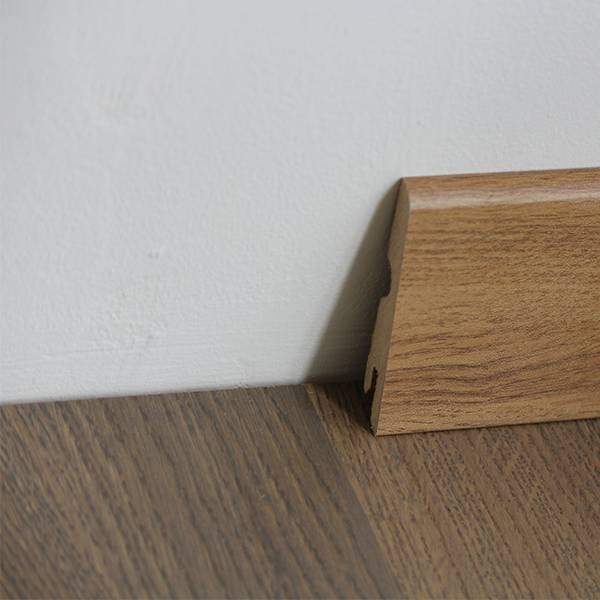 Виготовляється плінтус з МДФ дуже високої якості та зі шпону. Під час виготовлення плінтуса з МДФ застосовується метод пресування дрібної деревної стружки за високого тиску і температури. Клейкими речовинами є парафін або легнін. Отриманий таким чином матеріал вирізняється високою екологічною чистотою і абсолютно безпечний для людини.