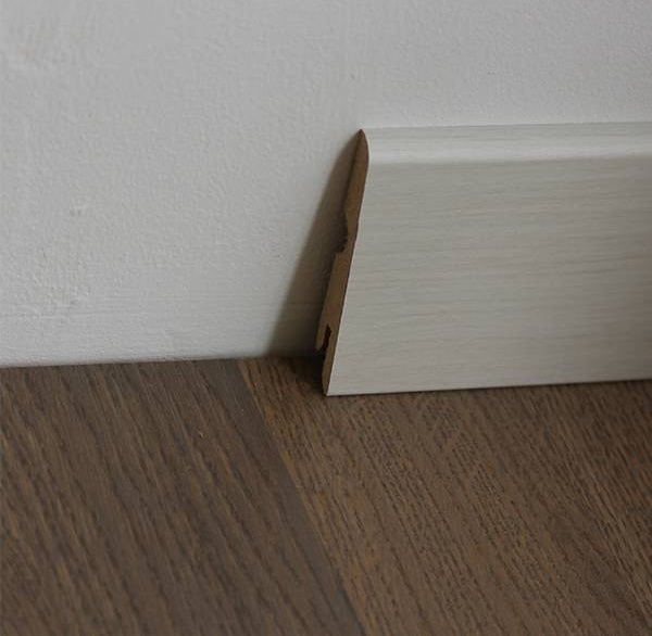 Виготовляється плінтус з МДФ дуже високої якості та зі шпону. Під час виготовлення плінтуса з МДФ застосовується метод пресування дрібної деревної стружки за високого тиску і температури. Клейкими речовинами є парафін або легнін. Отриманий таким чином матеріал вирізняється високою екологічною чистотою і абсолютно безпечний для людини.