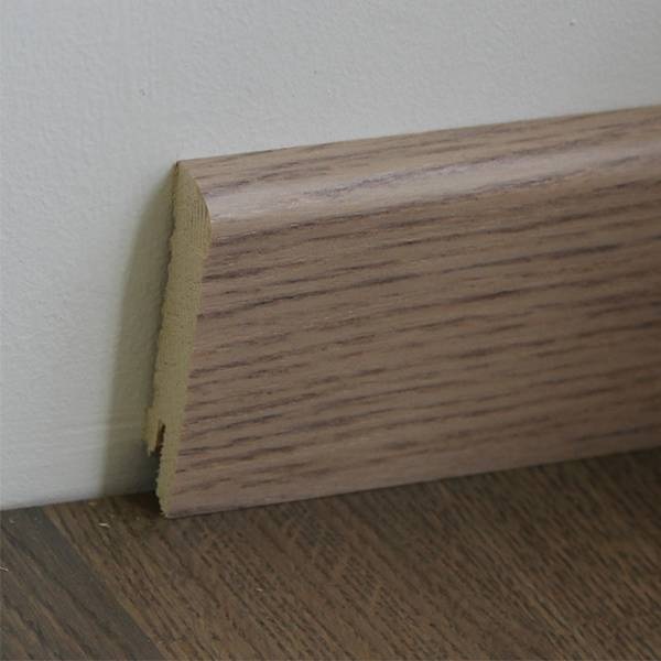 Виготовляється плінтус з МДФ дуже високої якості та зі шпону. Під час виготовлення плінтуса з МДФ застосовується метод пресування дрібної деревної стружки за високого тиску і температури. Клейкими речовинами є парафін або легнін. Отриманий таким чином матеріал вирізняється високою екологічною чистотою і абсолютно безпечний для людини.