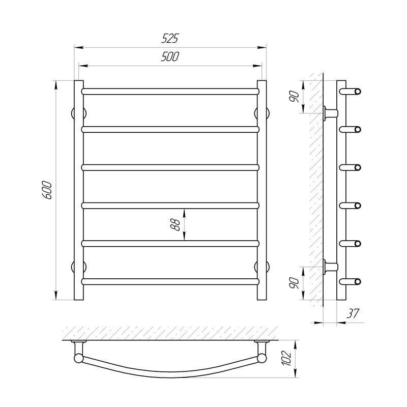 Електрична рушникосушка Laris Класик ЧФ6 права розетка