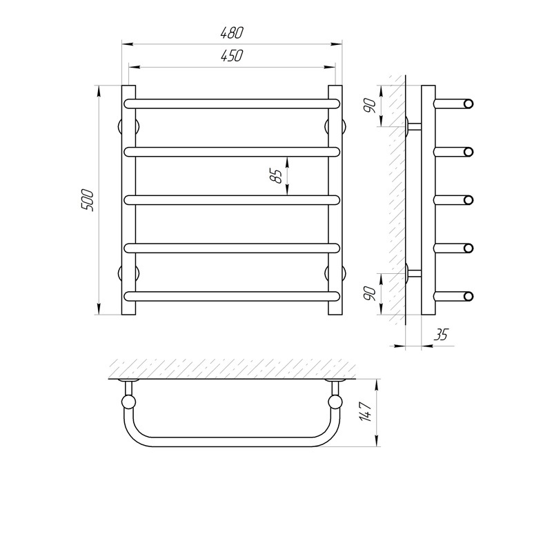 Електрична рушникосушка Laris Стандарт П5, ліве підключення (73207082) бронза
