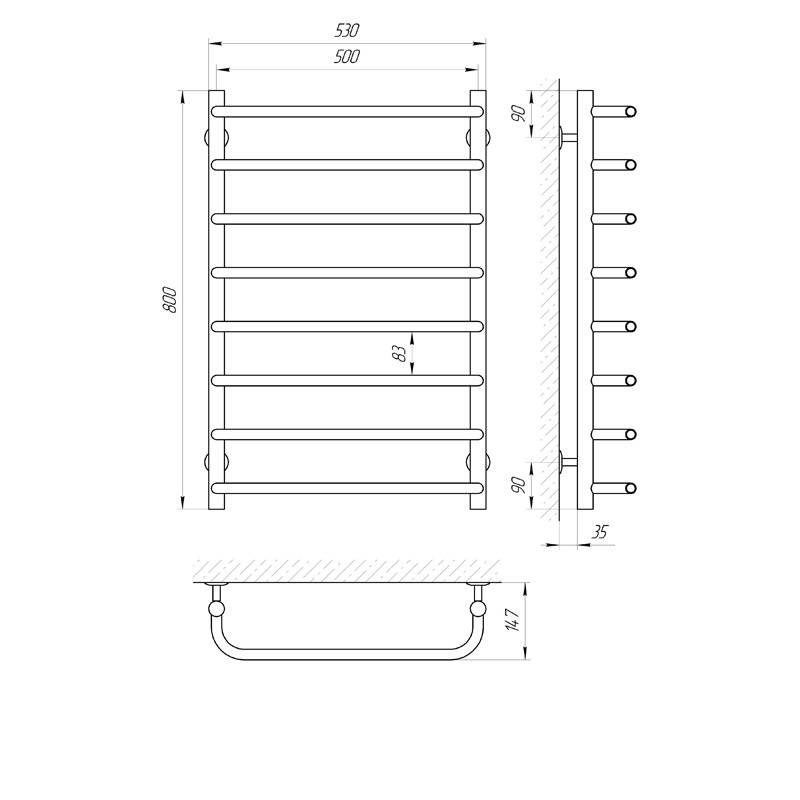 Електрична рушникосушка Laris Стандарт П8, ліве підключення (73207088) бронза