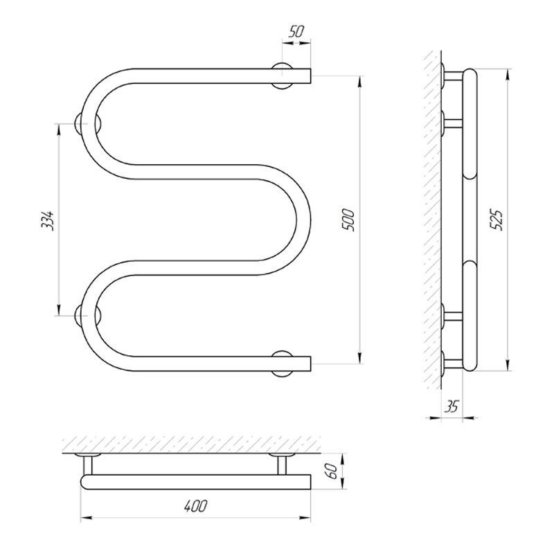 Електрична рушникосушка Laris Змійовик 25 РС3 400х500, праве підключення (73207031) хром