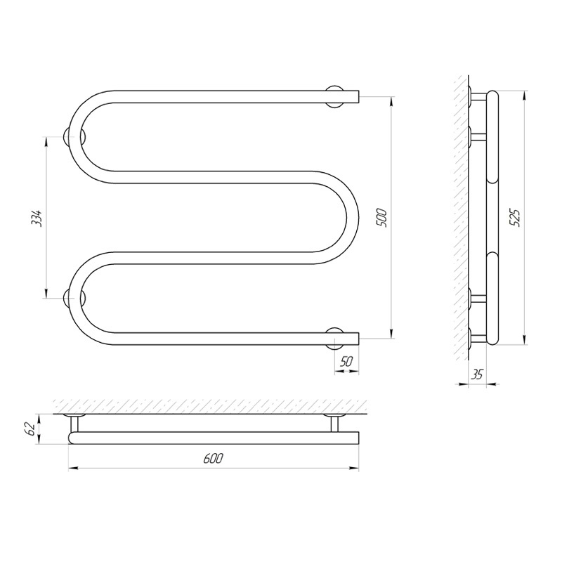 Електрична рушникосушка Laris Змійовик 25 РС3 600х500, ліве підключення (73207114) хром