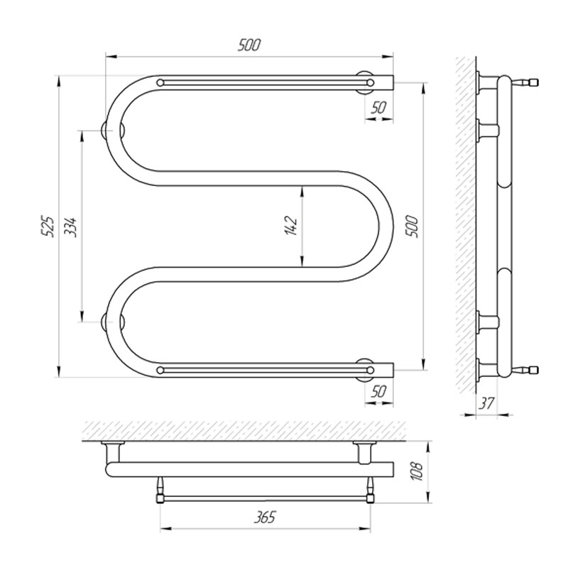 Електрична рушникосушка Laris Змійовик 25 ЧФ3, з 2-ма поличками ліва розетка