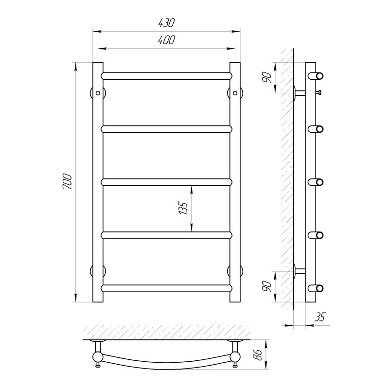 Рушникосушка Laris Флеш П5 400х700 (74100006) бронза