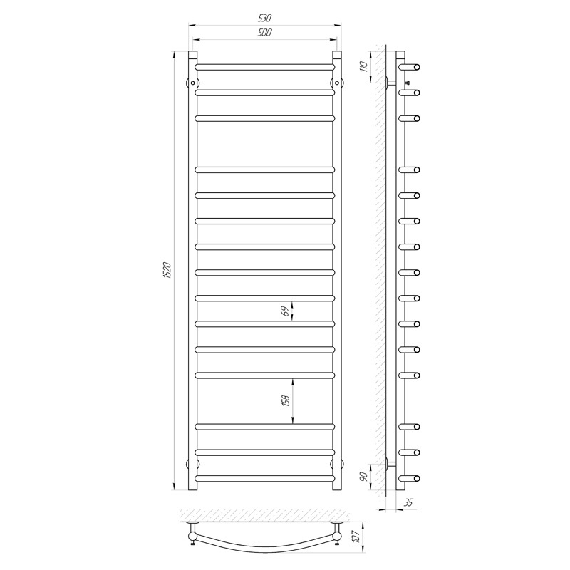 - діаметр: стійка Ø30, товщина 2 мм; перемичка Ø20, товщина 1,5 мм