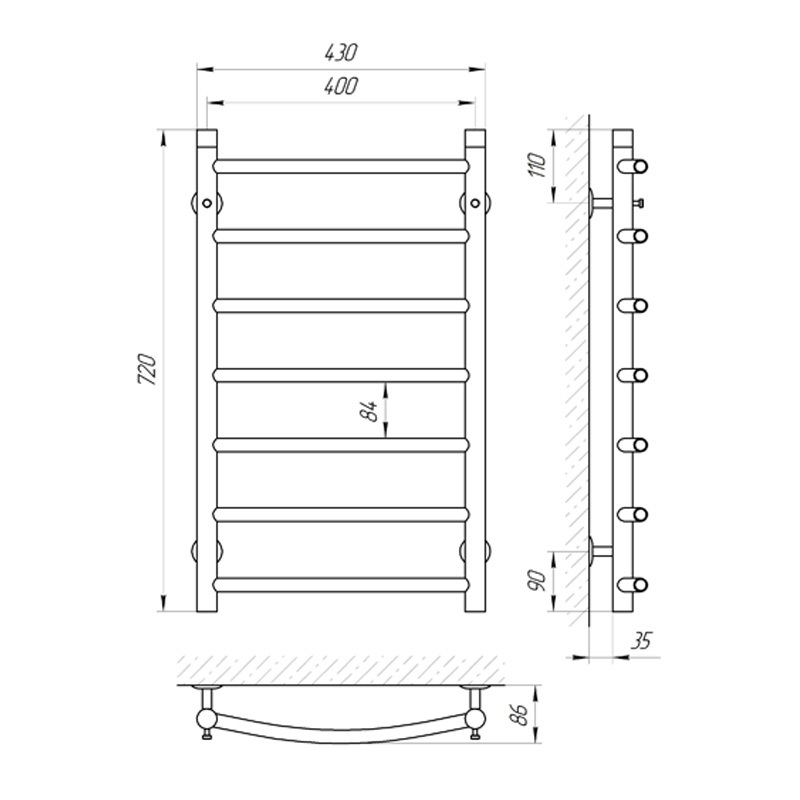 Рушникосушка Laris Класик П7 400х700 (71207581) бронза