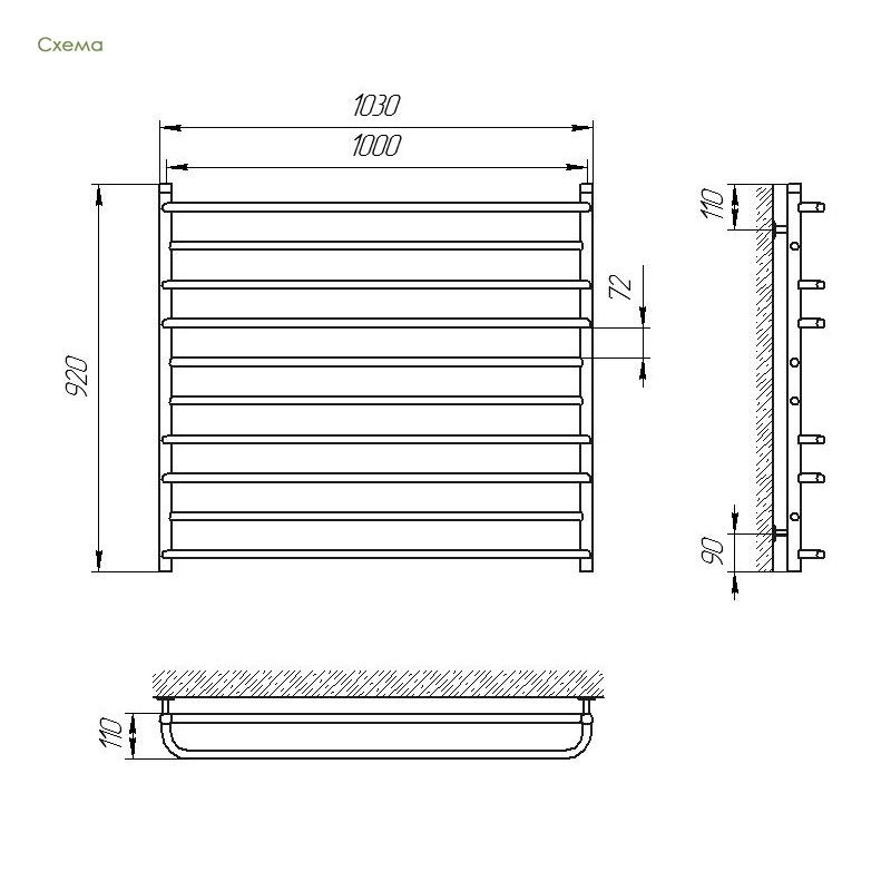 - має 10 перемичок,розміщення рівномірне, відстань між центрами підключення 1000 мм
