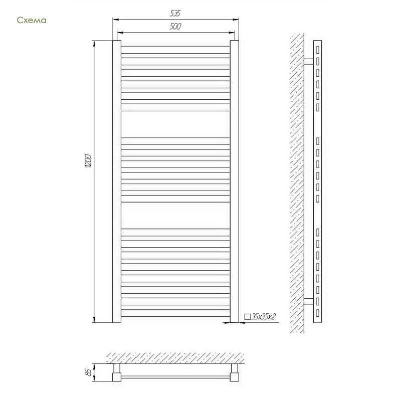 - діаметр: стійка 35х35, товщина 2 мм; перемичка 30х10, товщина 1,5 мм