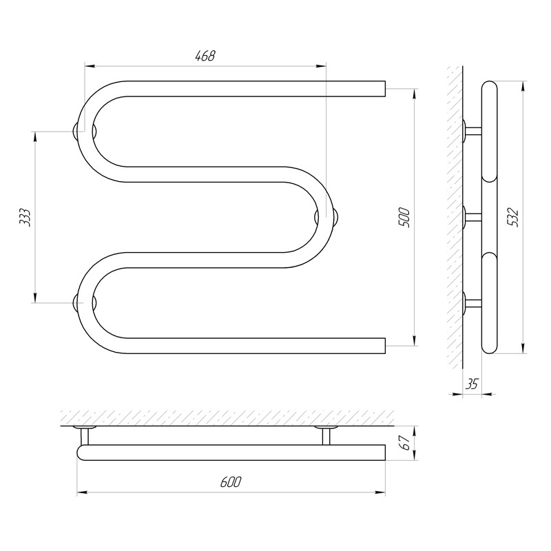 Рушникосушка Laris Змійовик 25 РС3 600х500.
