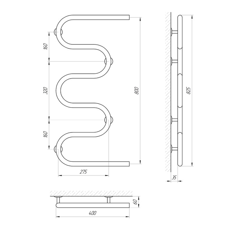 Рушникосушка Laris Змійовик 25 РС5 400х800.
