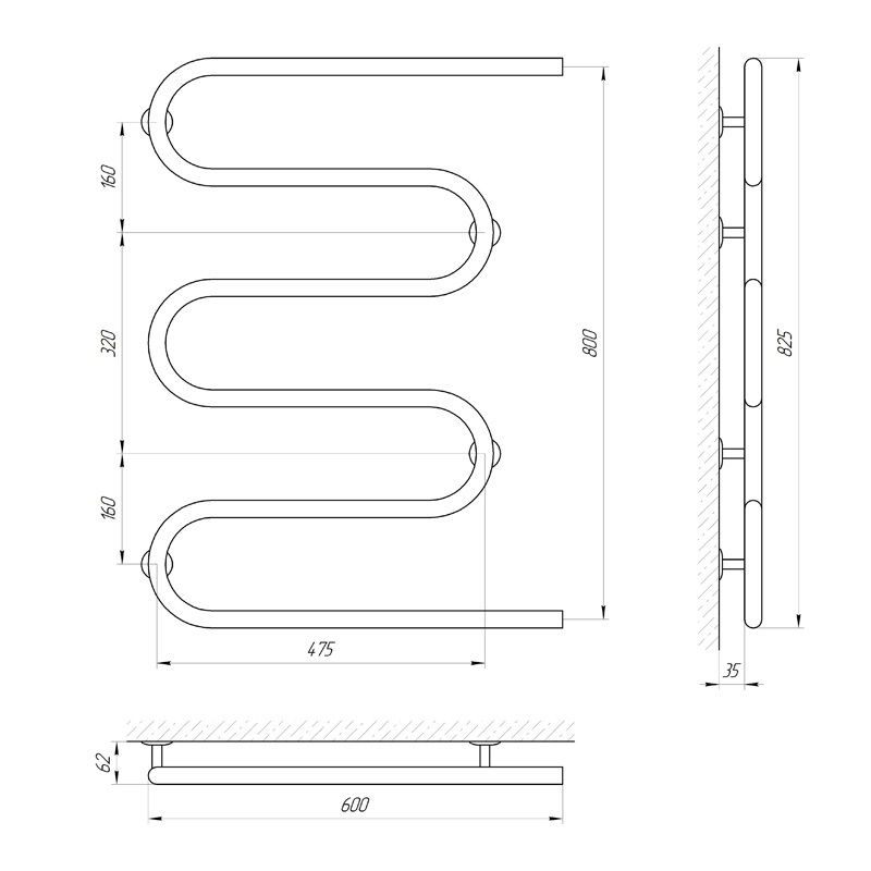 Рушникосушка Laris Змійовик 25 РС5 600х800.