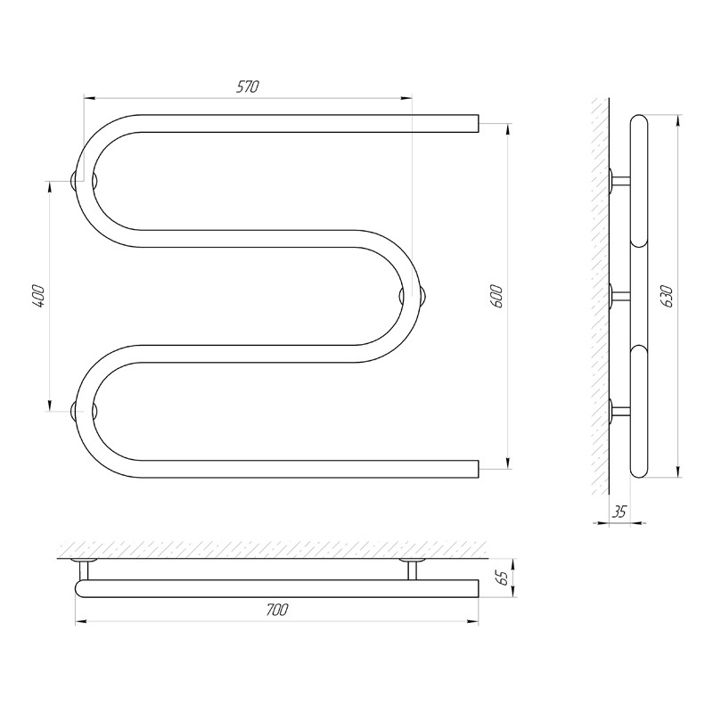 Рушникосушка Laris Змійовик 30 РС3 700х600.
