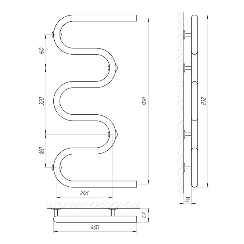 Рушникосушка Laris Змійовик 32 РС5 400х800 (71207229) хром