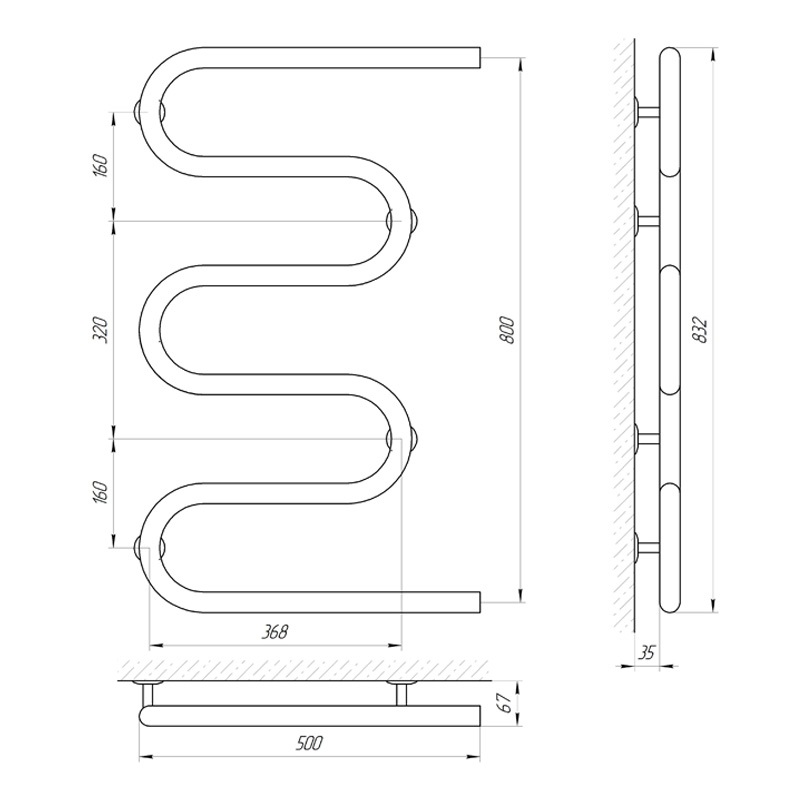 Рушникосушка Laris Змійовик 32 РС5 500х800 (71207231) хром