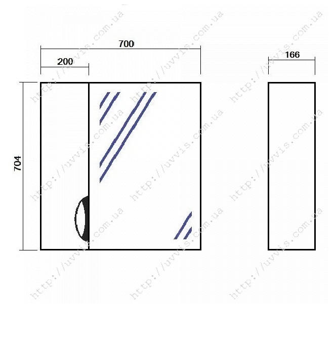 - ширина 700 мм, висота 700 мм, глибина 167 мм