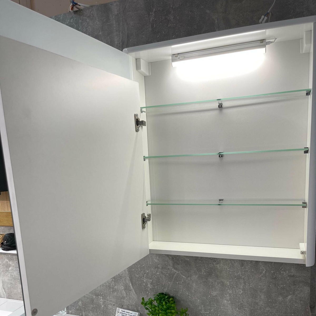- розпашні дзеркальні дверцята, петлі зліва, відкривання дверцят Tip On - натисканням, усередині 3 скляні полиці