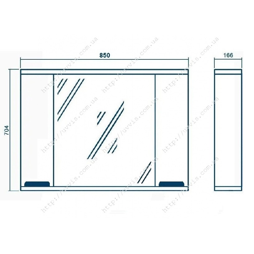 - ширина 850 мм, висота 700 мм, глибина 167 мм