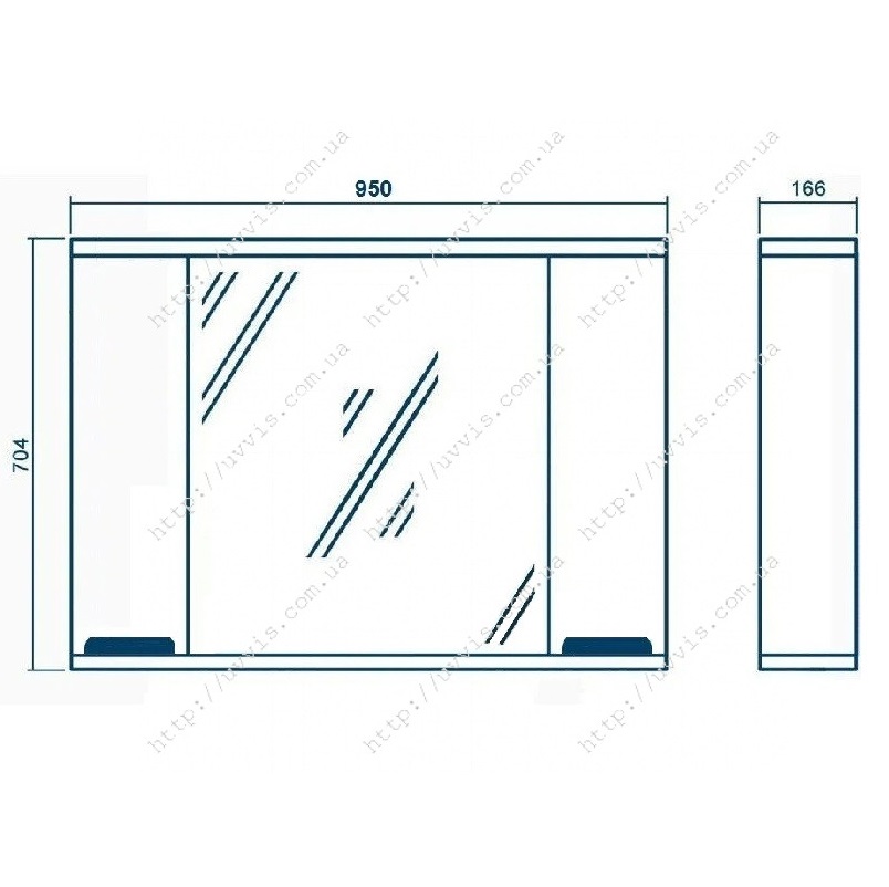 - ширина 950 мм, висота 700 мм, глибина 167 мм