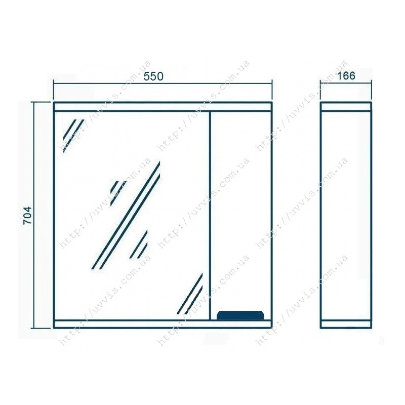 - ширина 550 мм, висота 700 мм, глибина 167 мм