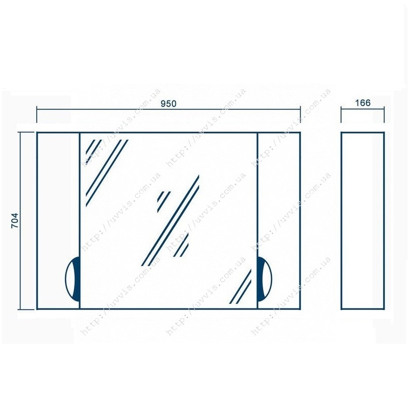 - ширина 950 мм, висота 700 мм, глибина 167 мм