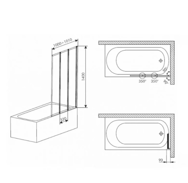 - душова шторка з ущільненням, створюваним двома ущільнювальними поверхнями, що забезпечує достатній захист від стікання води