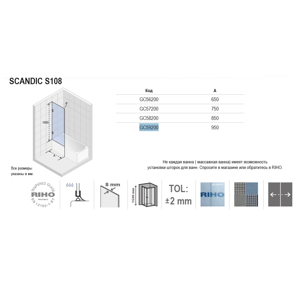Штора для ванної Riho Scandic S108-85