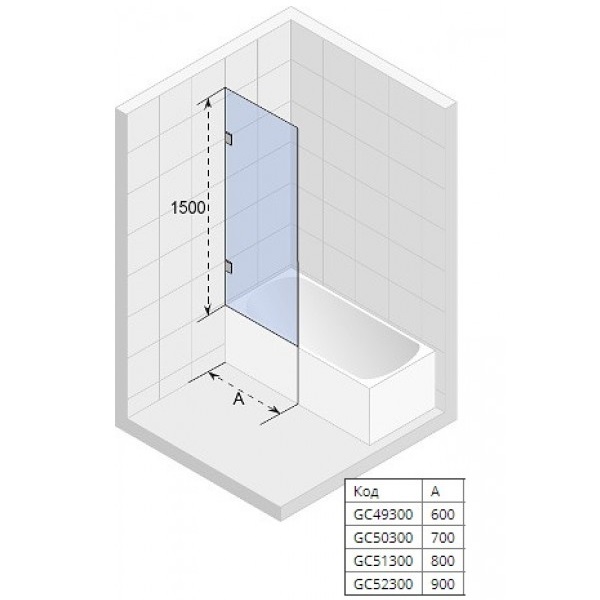 - вітраж скляний прозорий товщ. 8 мм, покриття Riho Shield анти-крапля