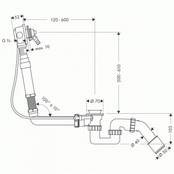 - Потрібно: зовнішня частина Hansgrohe Exafill (58127000) або Hansgrohe Exafill Plus (58128000), гнучка приєднувальна труба 800 мм Hansgrohe (58192000)