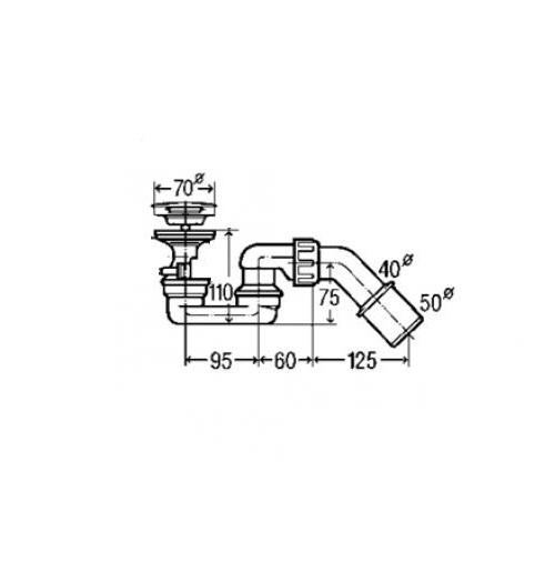- -приєднувальний розмір (верх (різьба)-Ø x діаметр сифона x відведення): 70 x 1 1/2 x 40/50