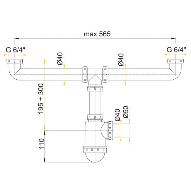 - Сифон для здвоєної мийки Alca plast A448, з накидними гайками 6/4".