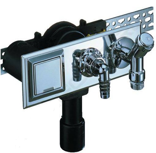 Сифон для пральної та посудомийної машини DN40/50 з інтегрованим під'єднанням води, з водопровідним краном R 1/2" і електричною розеткою - 280х100мм.