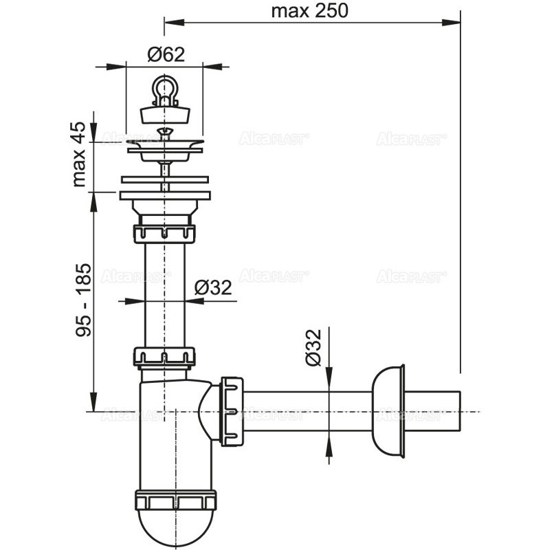 - Сифон для умивальника Alca plast A411, з нержавіючою решіткою d63.