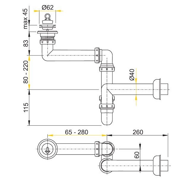 Сифон для умивальника Alca plast A413
