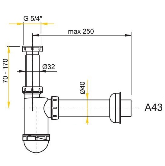 - Сифон для умивальника Alca plast A43, з накидною гайкою 5/4".