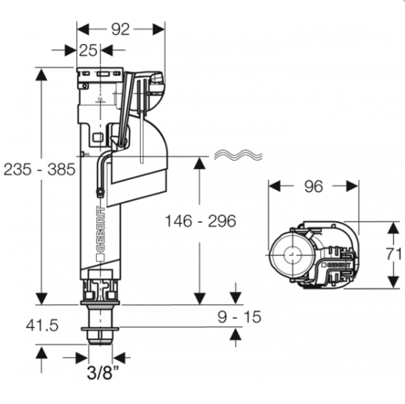 Впускний клапан Geberit Impuls 380 1/2 і 3/8, для заміни або ремонту арматури зовнішніх керамічних бачків.