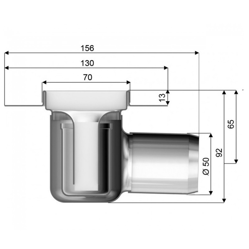 - горизонтальний фланець (по периметру каналу) для кращої гідроізоляції при установці біля входу або в середині душової
