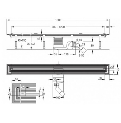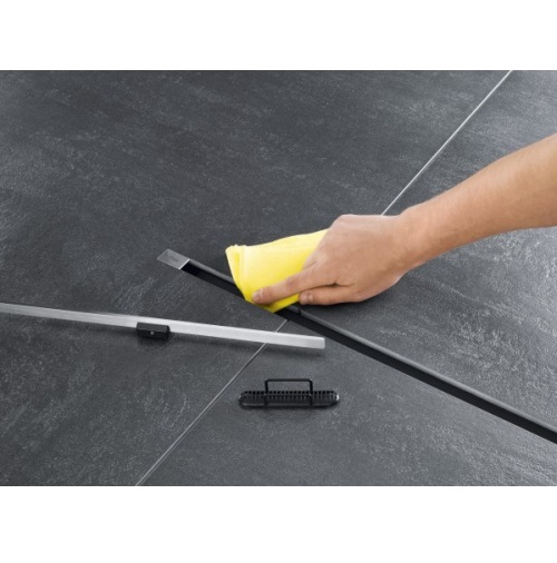 - - комплектація: монтажні опори, кінцеві заглушки, самоочисна конструкція сифона, регульоване за висотою кріплення для дизайн-вставки, компенсатор висоти, фронтальна поверхня для нанесення/закріплення гідроізоляції, набір ущільнень, шаблон для обрізання