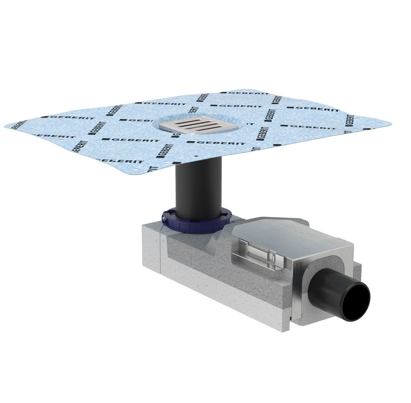 - пропускна здатність зливу - 0.8 л/с, глибина ущільнення води становить лише 30 мм, мінімальна висота стяжки на вході 65 мм, базовий блок виготовлено з пінополістиролу