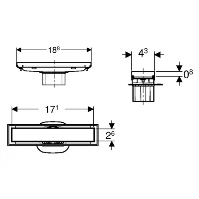 - Корпус дренажного каналу CleanLine для конструкції підлоги висотою від 65 мм, продуктивність 0.4 л/с,покриття підлоги плиткою товщиною 8-40 мм, гідрозатвор 30 мм,для використання з композитними герметиками
