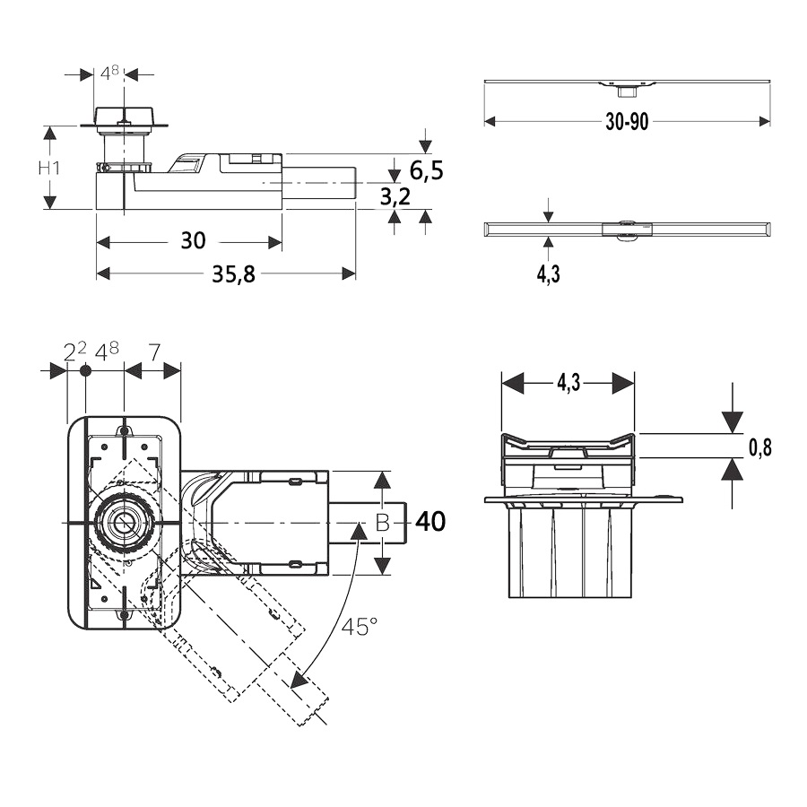 Повний комплект дренажного каналу Geberit CleanLine L30-90 см