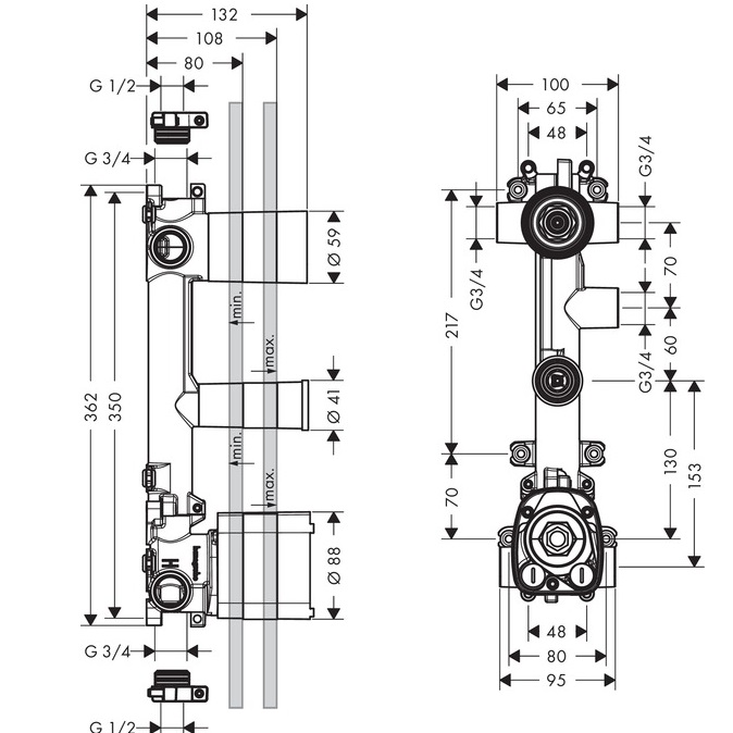 - 3 споживача, 2 виходи можуть використовуватися одночасно, горизонтальна або вертикальна установка, витрата води 59 л/хв.