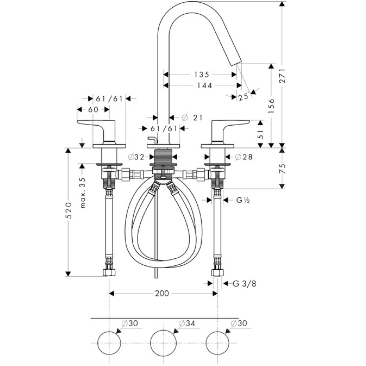 - Додатково рекомендується купити шлангове подовження для змішувача на 3 отвори (38959000)