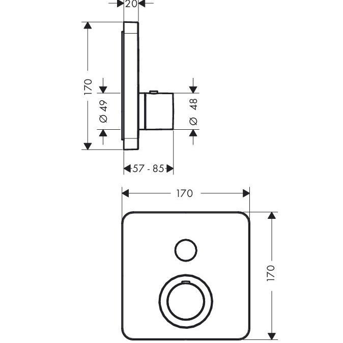 Термостат Hansgrohe Axor ShowerSelect -відмінною рисою є кнопка управління Select - завдяки якій, Ви зможете одним клацанням увімкнути або вимкнути подачу води або змінити тип струменя.